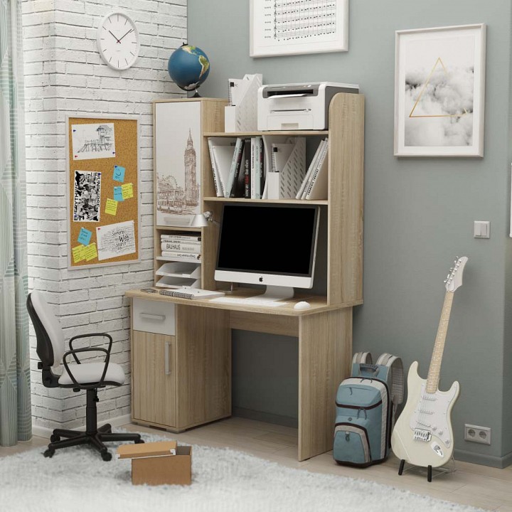 Лайт-1 Стол компьютерный 1200 дуб сонома/белый